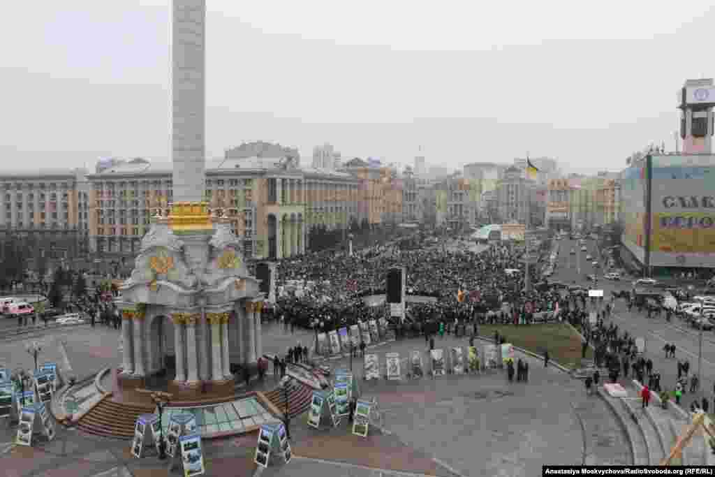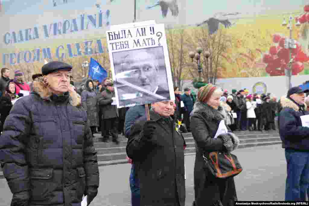 Участники Марша почтили память погибших 13 января в результате обстрела под Волновахой на Донбассе, а также всех людей, погибших во время боевых действий на Востоке Украины