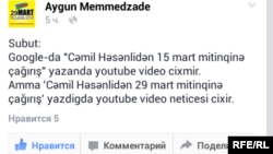 «Видимо, определенные органы взломали мой аккаунт в Фейсбуке и опубликовали там фальшивку, чтобы сбить с толку людей, желающих участвовать в акции. Официально заявляю, что я не публиковал подобную информацию», - сказал Джамиль Гасанлы.