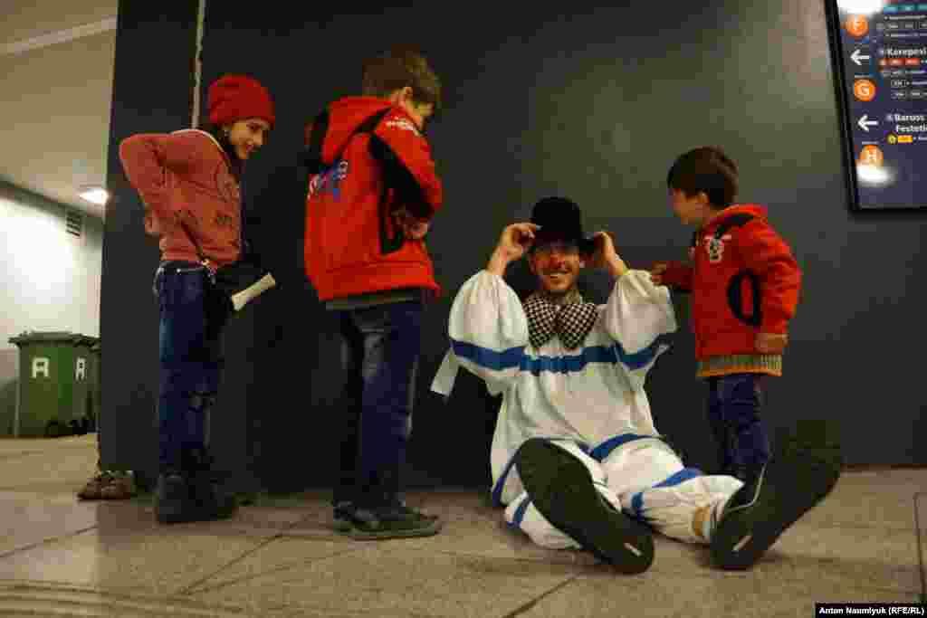 К самым маленьким приходит клоун, который каждый день развлекает детей