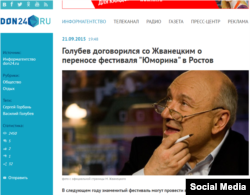 "Возможно, в следующем году традиционный фестиваль "Юморина", который проводился в Одессе ежегодно 1 апреля, будет проводиться в Ростове-на-Дону. О его переносе из Одессы в донскую столицу временно исполняющий обязанности губернатора Ростовской области договорился с Михаилом Жванецким. Об этом сегодня журналистам в Ростове сообщил глава администрации города Сергей Горбань", – сообщили на портале don24.