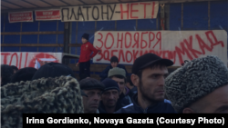 Забастовка дальнобойщиков в Дагестане продолжается уже неделю, однако местные чиновники отказываются общаться с водителями, телевидение не освещает акцию протеста, сообщает "Новая газета". На фотографиях с места событий видны плакаты "Платону нет" [С 15 ноября за каждый километр федеральной трассы с транспортных средств массой свыше 12 тонн будет взиматься дополнительная плата. Правительство издало распоряжение, согласно которому итоговая плата составит 3 рубля 06 копеек. Новая система взимания налогов называется "Платон"] и "30 ноября заблокируем МКАД".