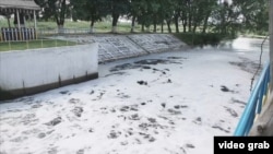 "У нас обычно вода чистая. А сейчас река стала цвета кофе", - рассказывает Николай, житель Остера. - "Ночью, чтобы вода не застаивалась и очищалась, люди сами открыли шлюз. Утром закрыли".