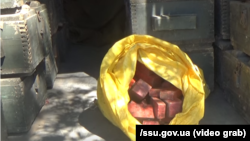 В заявлении говорится, что взрывчатка обнаружена в Марьинском районе Донецкой области. В СБУ утверждают, что с ее помощью сторонники так называемой самопровозглашенной "ДНР" планировали осуществить взрывы на гражданских и военных объектах в области перед празднованием Дня независимости Украины 24 августа.