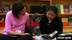 Гаванский Бишон по имени Иззи сегодня работает с ученицей третьего класса Элани Веласкез. Элани – дочь мигрантов из Мексико. Она учится в 57-й школе нью-йоркского Гарлема. "Я люблю читать Иззи, потому что он всегда меня слушает, и никогда не смеется надо мной, когда я делаю ошибку", – рассказывает Элани.