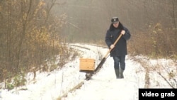 "Очень удобная, удачная получилась находка. Я его сразу поставил на рельсы - нашел в кювете палку и поехал", рассказывает Вячеслав Амосов.