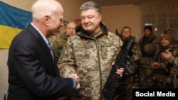 "Прибыл на командный пункт в районе Широкино с Джоном Маккейном, Линдси Грэмом и Эми Клобушар, чтобы поздравить наших воинов с Новым годом", – написал глава Украины в твиттере.