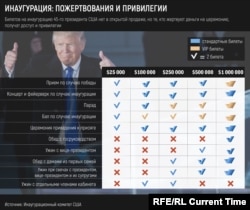 Билеты на инаугурацию президента США официально не продаются, но спонсоры церемонии их получат. Те, кто заплатили $250 000 и больше, попадут на ужин с семьями высшего руководства страны: