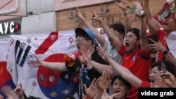 Болельщики из Южной Кореи появились позже, и фанаты двух стран обнимались, танцевали на столах, а иногда и падали с них.