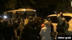 Местные жители вели трансляцию схода. На него сотрудники полиции подогнали автозак и потребовали от жителей разойтись. На место приехали около 12 полицейских.