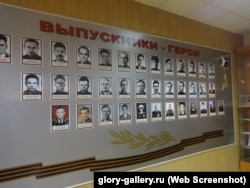 На этом фото слета выпускников ДВОКУ, сделанном 27 июля 2014 года, хорошо видно, что симметрию стенда нарушили две новые фотографии – Маслова и Попова (их несложно опознать даже в таком плохом качестве, фотографий этих героев России в открытых источниках более чем достаточно):