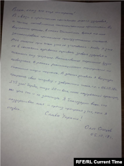 В письме самого Сенцова, которое он предоставил адвокату, сказано: