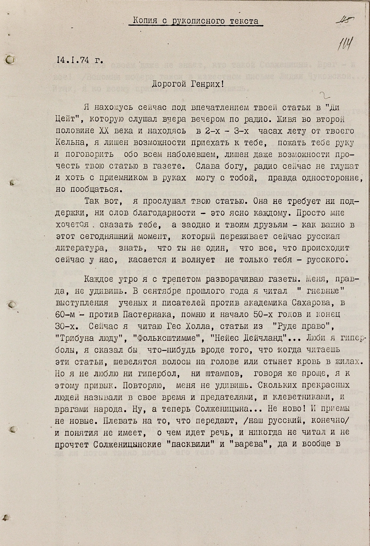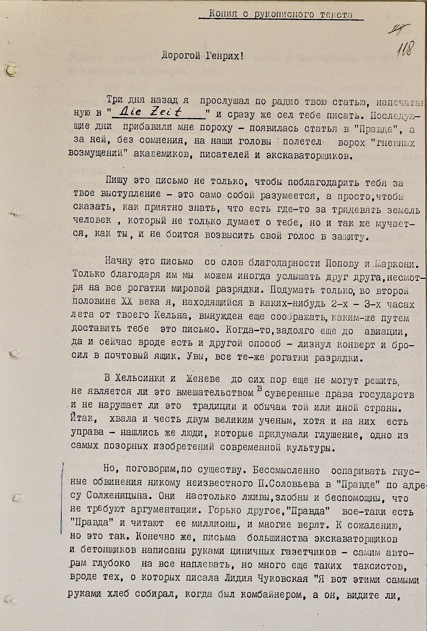 Особый интерес “комитетчиков” вызвали два варианта письма Некрасова немецкому писателю, президенту ПЕН-клуба Генриху Бёллю, посвященные их общему другу.