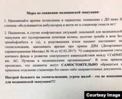 Радио Свобода: врачам "скорой" в Москве устно приказали сократить число госпитализаций