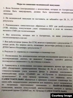 На некоторых подстанциях устное распоряжение есть и в печатном виде под названием "Меры по снижению медицинской эвакуации" – без печатей и подписей.