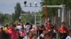 Рахмон и сын идут открывать Рогунскую ГЭС по лепесткам роз