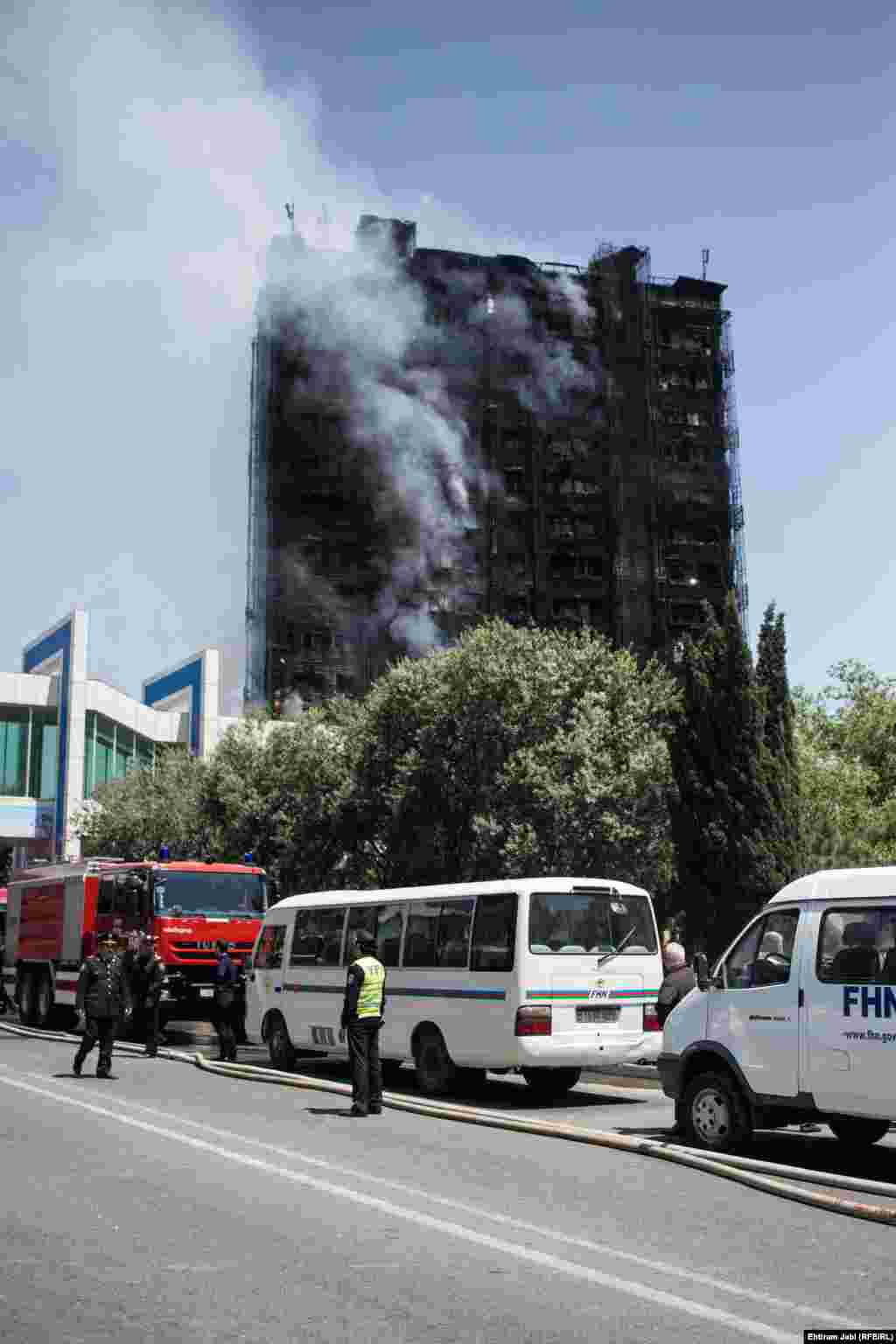 15 человек погибли, 63 получили ранения при пожаре во вторник в 16-этажном жилом доме в столице Азербайджана. После масштабного пожара, возникшего в результате возгорания пластиковой облицовки, жители соседних домов, опасаясь повторения трагедии, стали сами демонтировать обшивку своих зданий. Фотогалерея RFE/RL