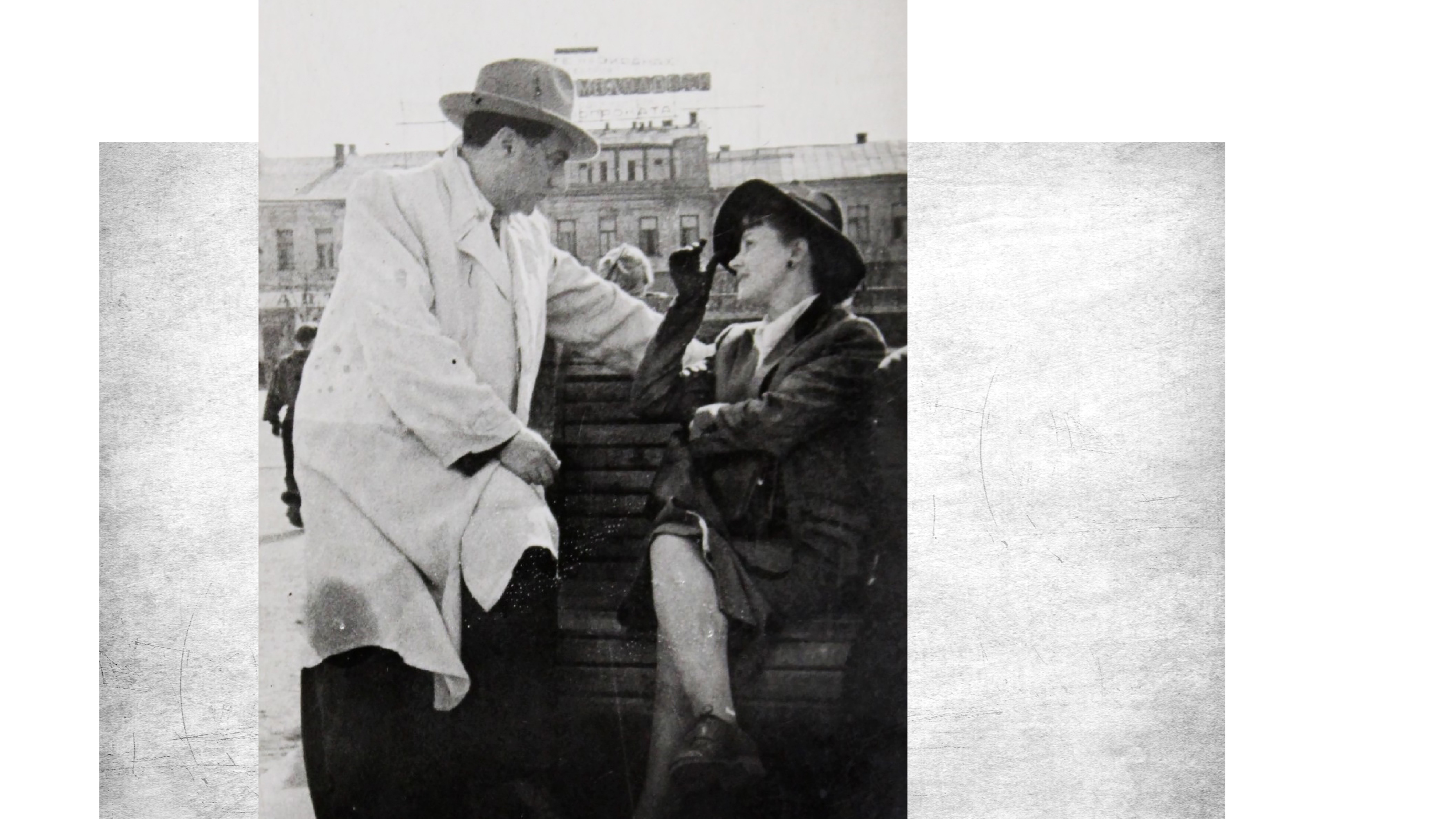 Игорь Сычев и Таисия Жаспар. Смоленская площадь, Москва, 1952 г. Съемки скрытой камерой. Архив СБУ