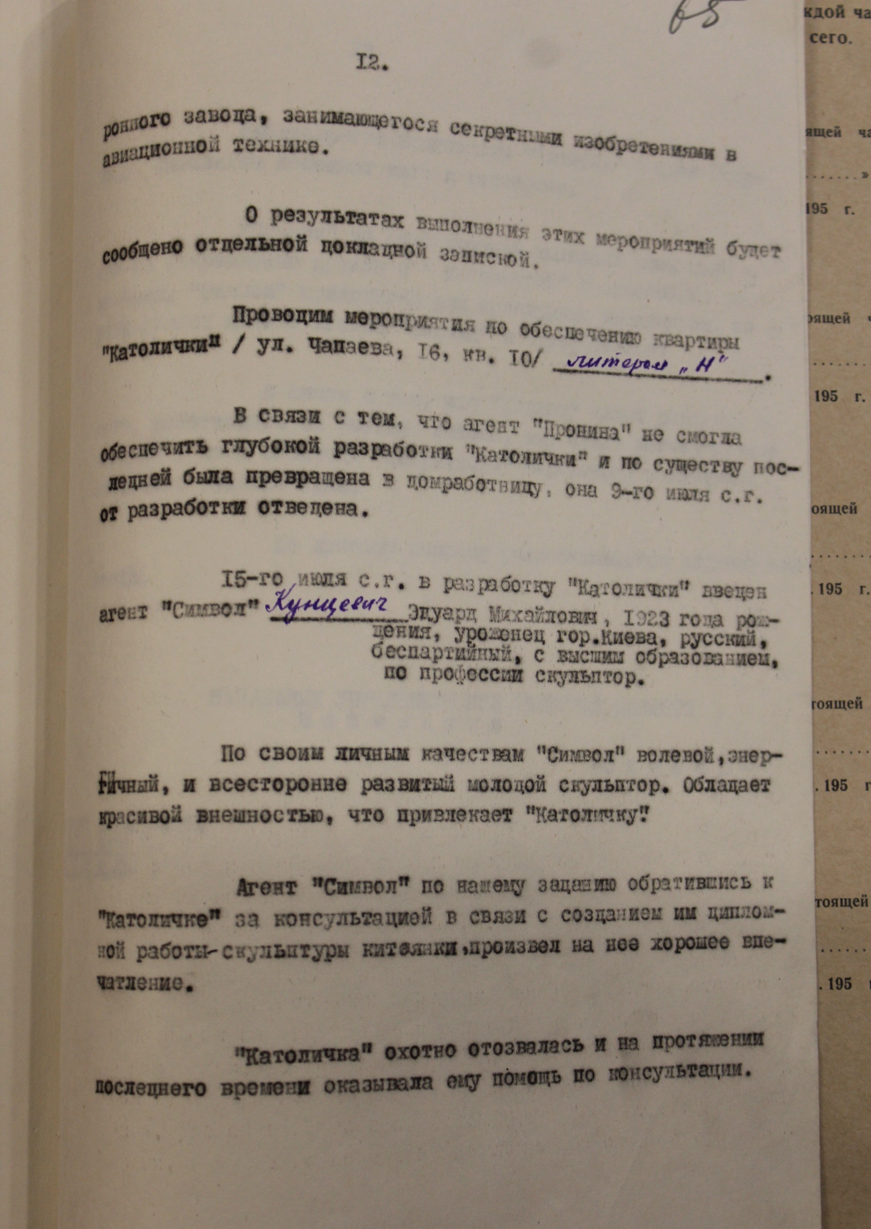 Для Кунцевича знакомство с Жаспар было частью задания. Поначалу через него хотели подставить к объекту какого-то родственника, работающего на оборонном заводе. Этот план тоже не воплотили в жизнь, но на протяжении года с лишним скульптор исправно сообщал кураторам о «Католичке».