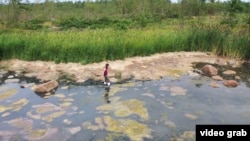 Первая – мутная пленка на поверхности воды, показывает Лина: "Это явно какие-то нефтепродукты, непонятно, что это – мазут или нефть".
