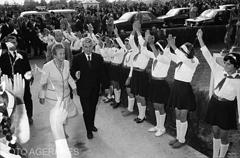 Торжественная встреча Николае и Елены Чаушеску, прибывающих с визитом в Мехединци (уезд на юго-западе страны), 1989 год