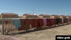 "Мы боимся за детей, чтобы в уши им не залезли насекомые. Ночью они по простыне ходят. От безысходности живем здесь, – говорит Рая Саимова. "Дети, большие дети, домой не заходят, здесь спят", – показывает она на ковры на улице.
