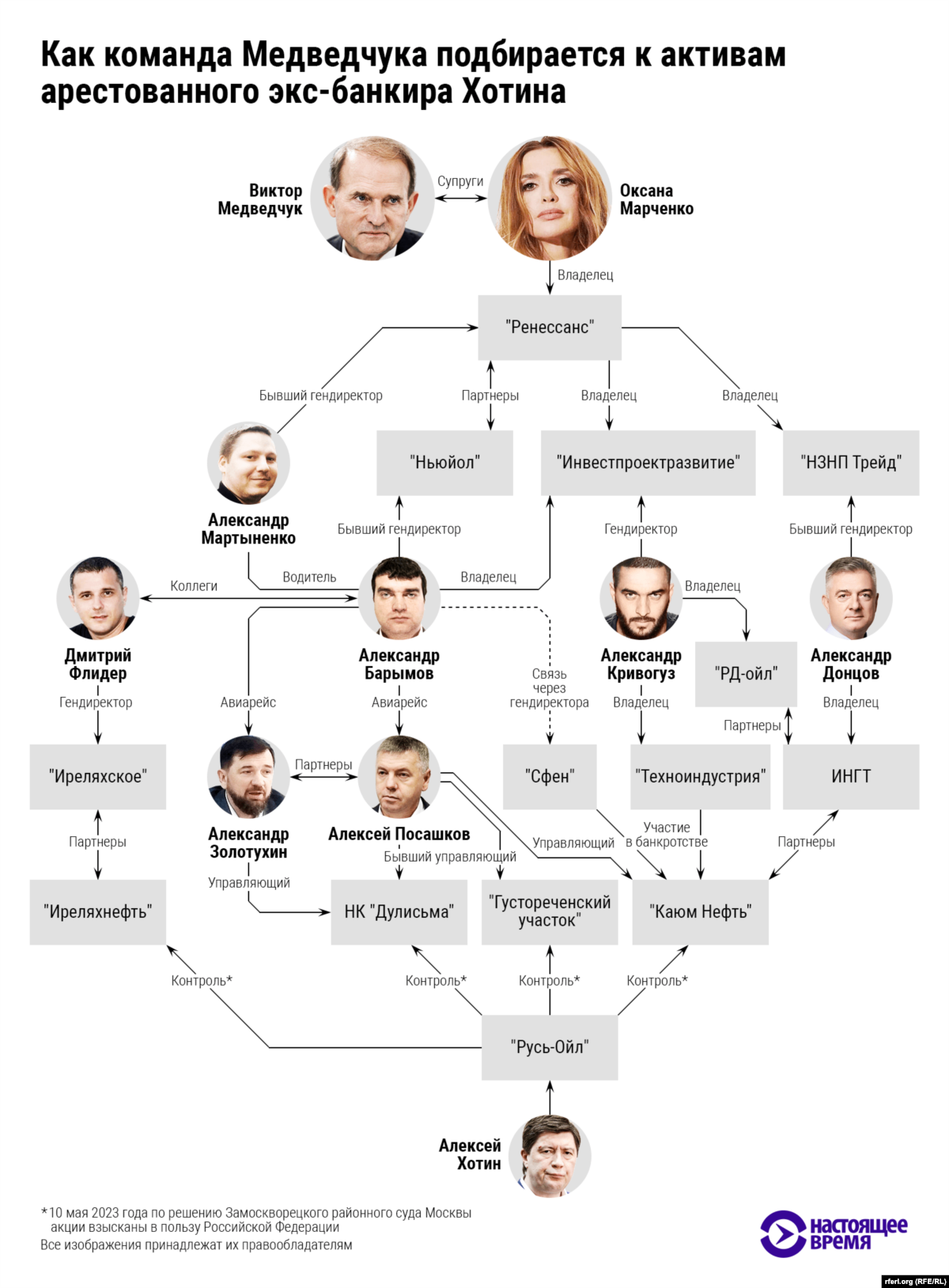 Это не первый нефтяной актив Медведчука в России – в разгар конфликта на юго-востоке Украины у него появился нефтеперерабатывающий завод в Ростовской области. В дальнейшем НПЗ уличат в поставках в аннексированный Крым и так называемые "ЛНР" и "ДНР". Завод также стал ключом к сибирскому месторождению Медведчука – оно могло достаться только тому, у кого есть нефтепереработка в Ростовской области. Необычное условие вызвало бурю негодования у остальных нефтяников. Среди недовольных была группа "Русь-Ойл", в которую входили и "Каюм нефть" с "Дулисьмой". Хотя этот бизнес несопоставим по масштабу с российскими нефтяными гигантами, в лучшие времена он стоил $2 млрд. Владельцем "Русь-Ойла" считался бизнесмен Алексей Хотин, который некогда входил в список Forbes и славился связями среди высокопоставленных силовиков.