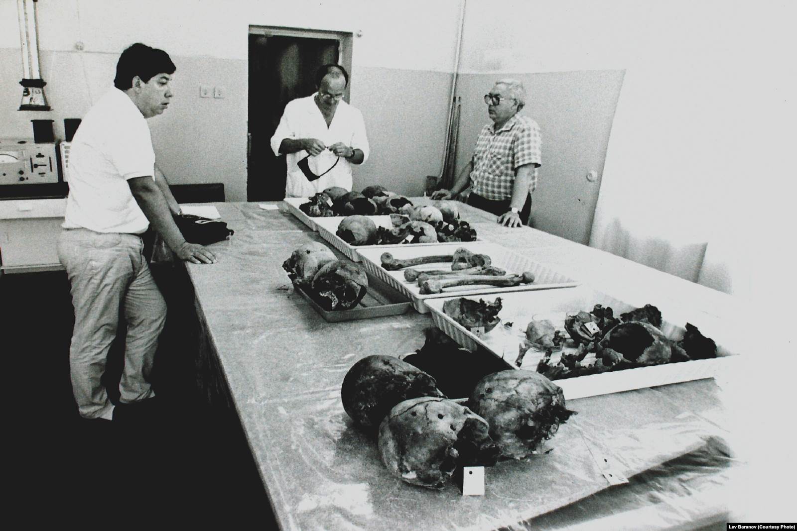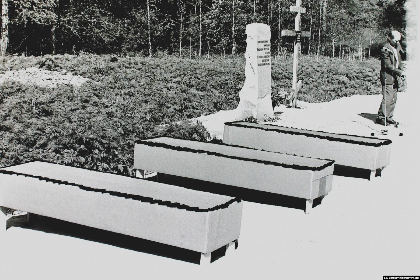 Позже на собраниях "Мемориала" побывали еще два человека, рассказавшие, что охраняли места массовых захоронений на 12-м километре Московского тракта, где участок был позднее засажен яблонями. Так о массовых захоронениях узнали не только в "Мемориале", но во всем городе: в СМИ стали появляться публикации на эту тему. В 1991 году прокуратура Свердловской области инициировала выборочную эксгумацию: ковш экскаватора тогда взял лишь один кубический метр земли, в которой обнаружились останки 31 человека. Во время экспертизы нашлись документы на имя уроженца Западной Украины Филиппа Загурского, расстрелянного в 1938 году. Исследователи и сотрудники прокуратуры пришли к выводу, что людей расстреливали в подвалах НКВД в центре Екатеринбурга в здании по улице Ленина, 17. Затем тела на грузовиках увозили по Московскому тракту и сбрасывали в яму.