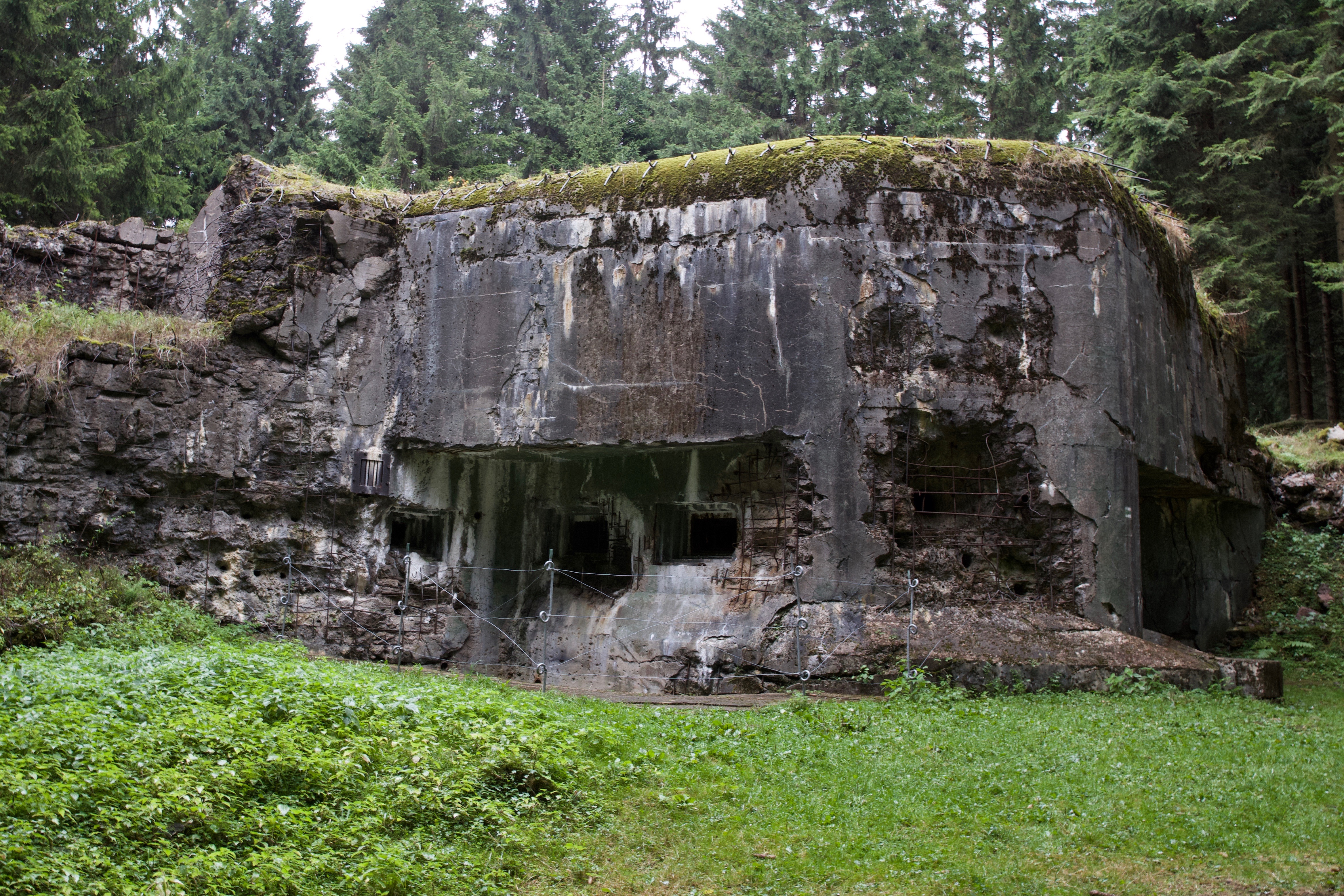 Каждый вход в крепость прикрывался одним или двумя пулеметами. Пулеметы также устанавливались по сторонам бункеров. У стен под турелями копали и бетонировали ров глубиной около двух метров: чтобы подобравшийся вплотную противник не мог заблокировать бойницу.