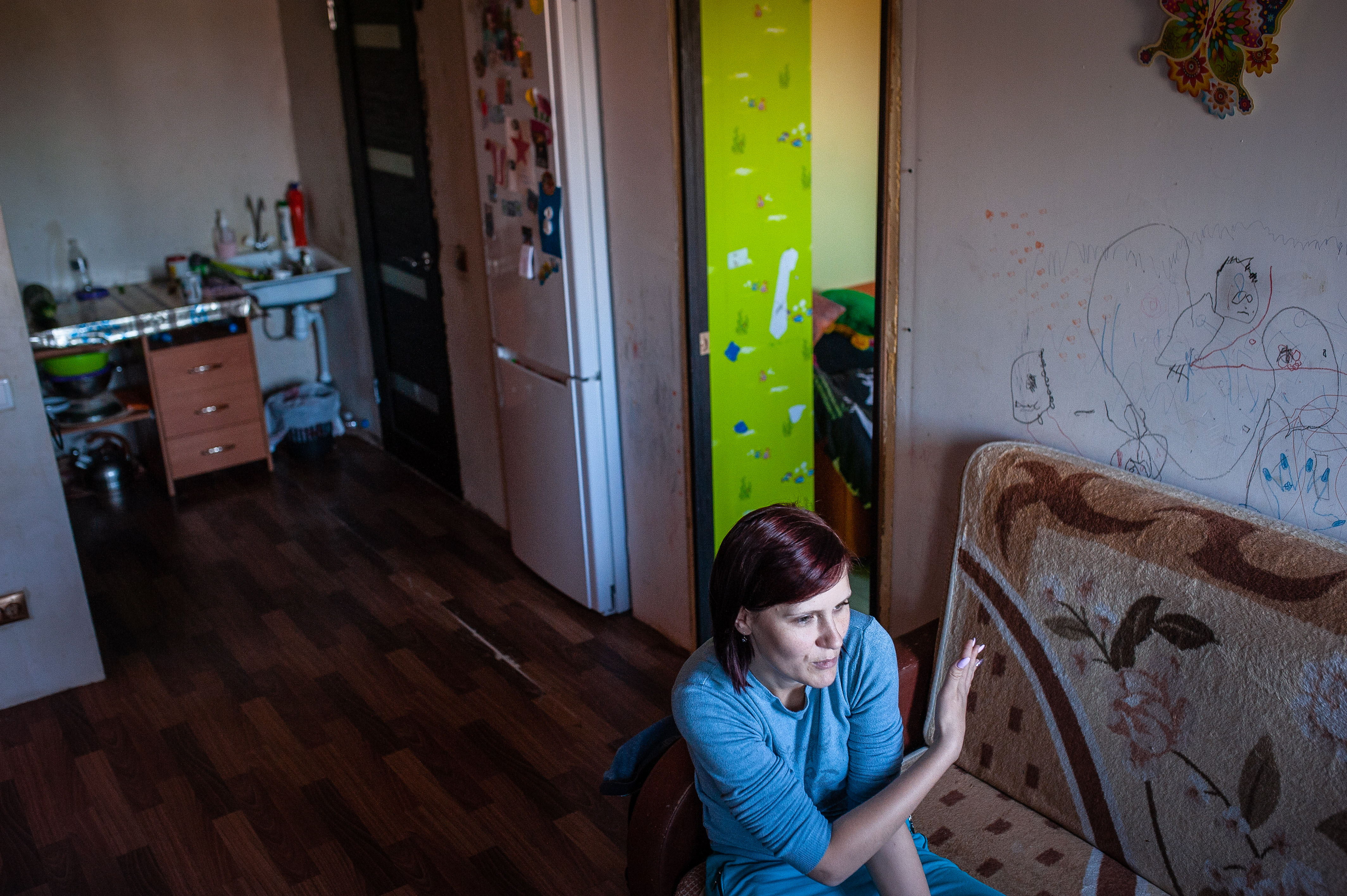 Оксана работает воспитателем в детском саду, но пока находится в отпуске по уходу за вторым ребенком. Ее гражданский муж иногда «пропадает на полгода», но «всегда возвращается». В комнате стоит детская кровать, на полу и подоконниках – игрушки. На межкомнатной двери вмятина. По словам хозяйки, это она ее неосторожно толкнула. Входную дверь можно открыть без ключа – сломался замок, и женщина его не ремонтирует. «Еще неизвестно, будет ли квартира моей, – говорит Оксана, – и стоит ли в нее вкладываться».