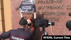 В Москве у здания ГУ МВД на Петровке в субботу опять задерживали участников одиночных пикетов в поддержку арестованного на 15 суток журналиста Ильи Азара и других активистов.