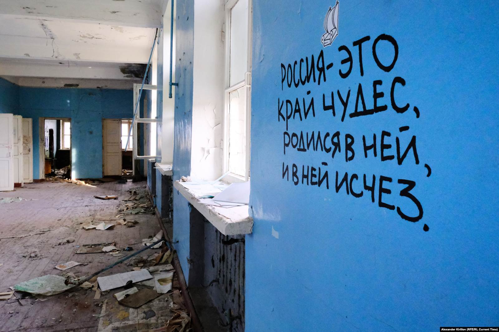 Этот лозунг написан на стене в одном из классов бывшей териберской школы. Ее закрыли и забросили вместе с классным оборудованием и целой библиотекой. Книги растаскали туристы и местные. Жителям также приглянулся пол в спортзале, который разобрали на строительство сараев. Но кирпичное трехэтажное здание оказалось достаточно крепким, чтобы не развалиться за несколько лет без присмотра. Местные говорят, что школа уже выкуплена кем-то, но до сих пор никак не используется и будет ли — неизвестно.