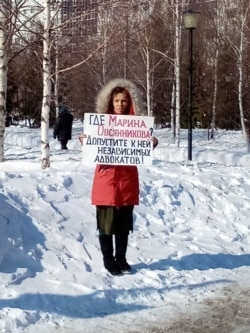 Жительница Уфы Вера Попова провела одиночный пикет с требованием допустить адвокатов к Марине Овсянниковой.