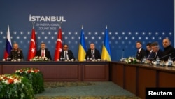 Пресс-секретарь Кремля Дмитрий Песков в ответ на это заявил, что в Украине не отменен запрет на прямые переговоры с Владимиром Путиным. При этом от нынешних переговоров в Стамбуле не стоит "ждать чудес", сказал Песков: "Рассчитывать на какие-то прорывы из разряда чудес... Вряд ли это возможно в нынешней ситуации. Мы намерены обеспечить наши интересы и выполнить те задачи, которые ставили перед собой с самого начала".