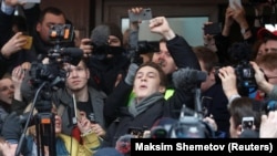 Поддержать Жукова к зданию суда пришли проректор ВШЭ Валерия Касамара, рэпер Оксимирон, главред "Новой газеты" Дмитрий Муратов.
