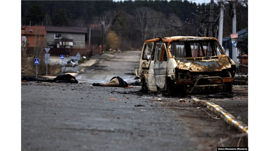 После того как российские военные отступили из Бучи, туда смогли попасть журналисты. Увидели тела мирных жителей, лежащие на улицах. Руки некоторых убитых были связаны. Президент Украины Владимир Зеленский обвинил в массовых убийствах мирных жителей российских военных: "На нашей земле побывало концентрированное зло. Убийцы. Палачи. Насильники. Мародеры". Минобороны России ответило, что "за время нахождения данного населенного пункта под контролем российских вооруженных сил ни один местный житель не пострадал от каких-либо насильственных действий".