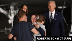 После освобождения Алсу, а также журналиста The Wall Street Journal Эвана Гершковича и бывшего пехотинца Пола Уилана встретили президент США Джо Байден, вице-президент Камала Харрис, родственники и коллеги.